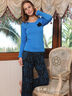 Очаровательный комплект, состоящий из лонгслива и брюк выполнен из тонкого трикотажа. Лонгслив с округлым вырезом горловины и с длинным прямым рукавом, полочка декорирована атласным цветком. Брюки с отрезным поясом на кулиске с атласной лентой, два кармана.