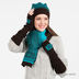 В комплект входит: элегантная шапка, очаровательные митенки и теплый, мягкий шарф.