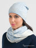 В комплект входит: элегантная двухслойная шапка из теплой шерстяной ткани, мягкий шарф. Модель стильно украшена перламутровыми стразами.