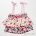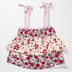 Блузка свободного кроя завязывается на тканные ленты бантом на плечах. В верх лифа вшита резинка, сажающая изделие по фигуре. На юбку нашита широкая оборка из ткани контрастного узора и расцветки.