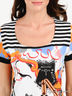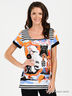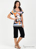 Материал: круглый вырез горловины, короткие рукава, оригинальная расцветка, классические капри на резинке.