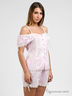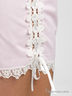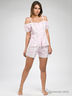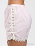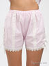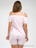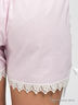 Изящный комплект из хлопка розового цвета. Оригинальный дизайн топа. Застежка на перламутровые пуговицы спереди. Вырез горловины, бретели, рукава, полочка, низ топа и шорты декорированы ажурной тесьмой и атласными лентами. Шорты с поясом на эластичной резинке.