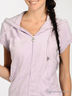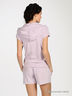 Комплект из олимпийки и шортиков. Олимпийка махровая , из натурального хлопка. Капюшон с кулиской по краю. Короткие рукава. Застегивается на молнию. Два накладных кармана. Манжеты, края карманов и низ изделия посажены на трикотажную резинку. Шорты махровые, расклешенного покроя. Верх изделия посажен на широкую трикотажную резинку с кулиской. Два накладных кармана. Сзади треугольная кокетка.