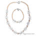 Очаровательный комплект состоит из двух предметов: колье и браслет. Модель выполнена из качественного материала контрастной расцветки. Изделие станет отличным дополнением не только повседневного, но и праздничного образа. Колье 44 см, браслет 18 см.
