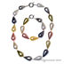 Очаровательный комплект состоит из двух предметов: колье и браслет. Модель выполнена из качественного материала контрастной расцветки. Изделие станет отличным дополнением не только повседневного, но и праздничного образа. Бусы 44 см, браслет 20 см.