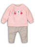 Комплект для девочки состоящий из свитшота и брюк. Свитшот с длинным рукавом, круглым вырезом. Кнопки на плече. Брюки на эластичном поясе.