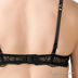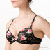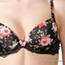 Стильный цветной комплект с бюстгальтером push-up и трусиками-бразилиана. Бюстгальтер имеет съемные бретели ажурную боковую часть. Трусики с ажурным поясом и красным бантиком сзади.