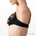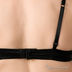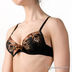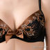 Стильный комплект с бюстгальтером push-up и трусиками-бразилиана черного цвета. Бюстгальтер декорирован вышивкой в виде цветов и стразами. Между чашками коричневый бант. Трусики украшены бантиком сзади.