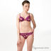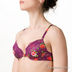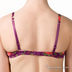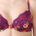 Стильный цветной комплект с бюстгальтером push-up и трусиками-стринг. Бюстгальтер имеет съемные бретели и ажурную вставку на чашечках. Трусики с ажурным поясом и красным бантиком сзади.