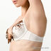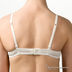 Стильный комплект с бюстгальтером push-up и трусиками-стринг молочного цвета. Бюстгальтер декорирован вышивкой в виде цветов и стразами. Между чашками коричневый бант. Трусики украшены бантиком спереди.