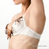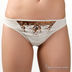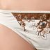 Стильный комплект с бюстгальтером push-up и трусиками-стринг молочного цвета. Бюстгальтер декорирован вышивкой в виде цветов и стразами. Между чашками коричневый бант. Трусики так же украшены вышивкой и бантиком спереди.