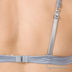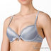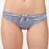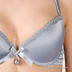 Восхитительный комплект серебряного цвета. Бюстгальтер push-up с гелевым наполнителем и съемными бретелями. Чашки украшены кружевом и декоративной подвеской. Трусики-стринг с кружевными краями спереди.