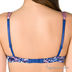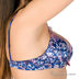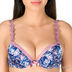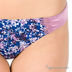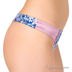 Элегантный комплект нижнего белья из сатина с пестрым принтом. Бюстгальтер на косточках с гелевым Push-up. Верхний обрез чашечек украшен однотонным сатином, а из соединение -подвеской с атласным бантиком. Боковинки имеют дополнительные корректирующие вставки. Бретели декорированы цветами из органзы с шитьем и регулируются по длине. Застежка на один крючок. Петли застежки расположены в четыре ряда, что обеспечивает наилучшую посадку по фигуре. Трусики-стринг с ластовицей на хлопковой подкладке также отделаны однотонным сатином сиреневого цвета и цветами из органзы с шитьем.