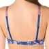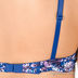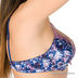 Элегантный комплект нижнего белья из сатина с пестрым принтом. Бюстгальтер на косточках с гелевым Push-up. Верхний обрез чашечек украшен цветочками из органцы с шитьем, а из соединение -подвеской с атласным бантиком. Боковинки имеют дополнительные корректирующие вставки. Бретели из атласной резинки декорированы присборенной тканью спереди и регулируются по длине. Застежка на один крючок. Петли застежки расположены в четыре ряда, что обеспечивает наилучшую посадку по фигуре. Трусики-слип с ластовицей на хлопковой подкладке также отделаны однотонным сатином сиреневого цвета и цветами из органзы с шитьем.