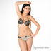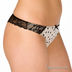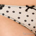 Сексапильный комплект нижнего белья выполнен из приятного на ощупь материала с принтом. Бюстгальтер на косточках с гелевым Push-up. Формованные чашечки декорированы кружевом, а место их соединения – бархатным бантиком. Съемные бретели регулируются по длине. Застежка на один крючок. Петли застежки расположены в четыре ряда, что обеспечивает наилучшую посадку по фигуре. Трусики-стринг декорированы бантиком на поясе спереди, а задняя часть выполнена из кружева. Ластовица с хлопковой подкладкой.