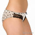 Сексапильный комплект нижнего белья выполнен из приятного на ощупь материала с принтом. Бюстгальтер с поролоновым Push-up. Формованные чашечки на косточках декорированы кружевом, а место их соединения – бархатным бантиком. Бретели регулируются по длине. Застежка на один крючок. Петли застежки расположены в четыре ряда, что обеспечивает наилучшую посадку по фигуре. Боковинки оснащены дополнительными корректирующими вставками. Трусики-слип декорированы кружевом и бантиком на поясе спереди. Ластовица с хлопковой подкладкой.