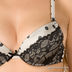 Сексапильный комплект нижнего белья выполнен из приятного на ощупь материала с принтом. Бюстгальтер с гелевым Push-up. Формованные чашечки на косточках декорированы кружевом, а место их соединения – бархатным бантиком. Съемные бретели регулируются по длине. Застежка на один крючок. Петли застежки расположены в четыре ряда, что обеспечивает наилучшую посадку по фигуре. Трусики-стринг декорированы кружевом и бантиком на поясе сзади. Ластовица с хлопковой подкладкой.