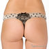 Сексапильный комплект нижнего белья выполнен из приятного на ощупь материала с принтом. Бюстгальтер с гелевым Push-up. Формованные чашечки на косточках декорированы кружевом, а место их соединения – бархатным бантиком. Съемные бретели регулируются по длине. Застежка на один крючок. Петли застежки расположены в четыре ряда, что обеспечивает наилучшую посадку по фигуре. Трусики-стринг декорированы кружевом и бантиком на поясе сзади. Ластовица с хлопковой подкладкой.
