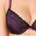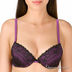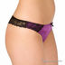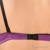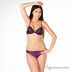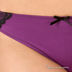 Сексапильный комплект нижнего белья выполнен из приятного на ощупь материала ярко-фиолетового цвета. Бюстгальтер на косточках с гелевым Push-up. Формованные чашечки декорированы кружевом, а место их соединения – бархатным бантиком. Съемные бретели регулируются по длине. Застежка на один крючок. Петли застежки расположены в четыре ряда, что обеспечивает наилучшую посадку по фигуре. Трусики-стринг декорированы бантиком на поясе спереди, а задняя часть выполнена из кружева. Ластовица с хлопковой подкладкой.