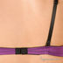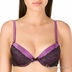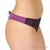 Сексапильный комплект нижнего белья выполнен из приятного на ощупь материала яркого фиолетового цвета. Бюстгальтер с гелевым Push-up. Формованные чашечки на косточках декорированы кружевом, а место их соединения – бархатным бантиком. Съемные бретели регулируются по длине. Застежка на один крючок. Петли застежки расположены в четыре ряда, что обеспечивает наилучшую посадку по фигуре. Трусики-стринг декорированы кружевом и бантиком на поясе сзади. Ластовица с хлопковой подкладкой.