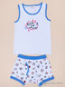 Забавный комплект, состоящий из маечки и трусиков выполнен из тонкой хлопковой ткани. Майка с округлым вырезом горловины декорирована набивным рисунком. Мягкие трусики с поясом на резинке.