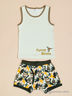 Забавный комплект, состоящий из маечки и трусиков выполнен из тонкой хлопковой ткани. Майка с округлым вырезом горловины декорирована набивным рисунком. Мягкие трусики с поясом на резинке.