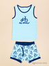 Забавный комплект, состоящий из маечки и трусиков выполнен из тонкой хлопковой ткани. Майка с округлым вырезом горловины декорирована набивным рисунком. Мягкие трусики с поясом на резинке.