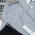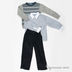 Комплект для мальчика состоит из рубашки, джемпера и брюк. Рубашка с контрастным отложным воротом и манжетами застегивается на пуговицы. Джемпер с круглым вырезом декорирован оригинальным принтом, манжеты и низ изделия в виде трикотажной резинки. Брюки с отрезным поясом застегиваются на пуговицу.