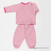 Комплект для новорожденных состоит из лонгслива и ползунков. Лонгслив с круглым вырезом и длинным рукавом застегивается на кнопки на полочке. Ползунки на резинке с формованным следом.