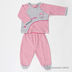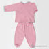 Комплект для новорожденных состоит из лонгслива и ползунков. Лонгслив с круглым вырезом и длинным рукавом застегивается на кнопки на полочке. Ползунки на резинке с формованным следом.