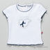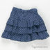 Детали; Верх: округлый вырез горловины, короткие рукава, застежка на две кнопки, полочка украшена стразами и декоративным элементом. Низ: в поясе вставка из эластичной резинки, изделие украшено многослойными воланами