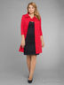 Комплект двойка: платье и пальто. Платье с защипами, спереди на платье декоративные молнии. Модель с короткими рукавами и округлым вырезом горловины. Пальто контрастного цвета с рукавам 3/4, отложным воротником и застежкой на пуговицы. Отличный вариант для Вашего гардероба.