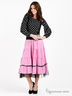 Оригинальная юбка на подтяжках с широким поясом и сетчатой оборкой. Подтяжка украшена тканевым цветком.