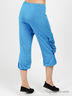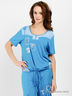 Стильный комплект состоит из свободной футболки и бриджей. Футболка с округлым вырезом горловины. Короткие рукава. Низ присборен на кулиску. Бриджи с отрезным поясом-резинкой. По бокам накладные карманы. Модель украшена аппликацией со стразами.