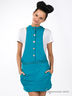 Комплект трикотажный, состоящий из сарафана и футболки. Юбку можно отстегнуть от верхней части сарафана и использовать как самостоятельный элемент гардероба, тем более, что и спереди и сзади на ней имеются карманы. Верхняя часть сарафана имеет капюшон, застёжку на пуговицы спереди и перекрещенные бретели сзади. Футболка классическая, с коротким рукавом, на груди – «морской» принт.