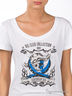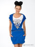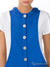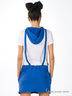 Комплект трикотажный, состоящий из сарафана и футболки. Юбку можно отстегнуть от верхней части сарафана и использовать как самостоятельный элемент гардероба, тем более, что и спереди и сзади на ней имеются карманы. Верхняя часть сарафана имеет капюшон, застёжку на пуговицы спереди и перекрещенные бретели сзади. Футболка классическая, с коротким рукавом, на груди – «морской» принт.