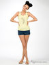 Комплект трикотажный, состоящий из майки и шортов. Перед майки украшает мотив, выполненный из « состаренных» гвоздиков. Такие же гвоздики располагаются по окантовкам горловины и пройм. Шорты с карманами спереди, которые застёгиваются на пуговицы, и фиктивными карманами сзади. Низ шортов окантован трикотажной резинкой