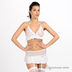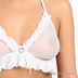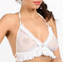 Бюстгальтер на завязках выполнен из эластичной полупрозрачной сетки. Декорирован плиссированной оборкой.