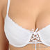 Бюстгальтер на косточках с эффектом push-up с поролоновым уплотнителем. На чашечка вертикальный шов. Бретели регулируются по длине. Застежка на два крючка. Выполнен из кружева и искристого атласа. Декорирован шнуровкой.
