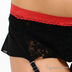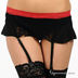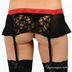 Комплект состоит из бюстгальтера классической формы, трусиков стрингов и широкого пояса с пажами для чулок. Выполнен из тонкой эластичной сетчатой ткани с кружевными вставками. Трусики с ластовицей на хлопковой подкладке. Бюстгальтер на косточках с несъемными эластичными бретелями, которые регулируются по длине. Застежка на два крючка в три позиции. Комплект декорирован контрастными кружевными вставками.