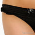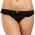 Комплект состоит из топа и трусиков стрингов. Выполнен из тонкой эластичной сетчатой ткани с блестящим напылением. Топ на тонких эластичных бретелях, которые регулируются по длине. Верх изделия посажен на резинку. Трусики дополнены ластовицей с хлопковой подкладкой. Комплект декорирован оборками.