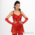 Кружевной корсет на каркасе из эластичной сетки со вставками из искристого атласа. Регулируемые бретельки, декорированы оборками. Формованные чашечки на косточках с диагональным швом. Чашечки с эффектом push-up (съемный поролоновый уплотнитель). Застегивается сзади на крючки. Съемные регулируемые подвязки. Декорирован кружевной оборкой, создающий эффект юбки.