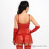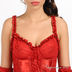 В комплект входит: корсет, трусики-стринги, чулки, нарукавники