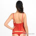 Кружевной корсет на каркасе. Регулируемые бретельки. Формованные чашечки на косточках с вертикальным швом. Чашечки с эффектом push-up ( поролоновый уплотнитель). Застегивается сзади на крючки. Съемные регулируемые подвязки.