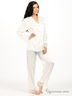 Комплект состоит из халата, брюк, рубашки, топа, шорт и сорочки. Халат, рубашка и топ выполнены из шелковистой ткани с жаккардовым плетением. Брюки, шорты и сорочка из атласной ткани. Халат завязывается на пояс, рукав 7/8 дополнен кружевной вставкой. Рубашка застегивается на пуговицы, длинный рукав с кружевной вставкой. Брюки посажены на резинку, дополнены кружевными вставками внизу. Топ на тонких, регулирующихся по длине бретелях декорирован кружевной вставкой. Шорты посажены на резинку. Длинная сорочка на тонких, регулирующихся по длине бретелях декорирована кружевной вставкой.