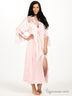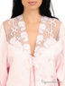 Комплект состоит из халата, брюк, рубашки, топа, шорт и сорочки. Халат, рубашка и топ выполнены из шелковистой ткани с жаккардовым плетением. Брюки, шорты и сорочка из атласной ткани. Халат завязывается на тонкие атласные ленточки, рукав 7/8 дополнен вставкой с вышивкой и стразами. Рубашка с отложным воротом застегивается на пуговицы, длинный рукав с кружевной вставкой с вышивкой и стразами. Брюки посажены на резинку, дополнены кружевными вставками с вышивкой и стразами. Топ на тонких, регулирующихся по длине бретелях декорирован кружевной вставкой с вышивкой и стразами. Шорты посажены на резинку. Длинная сорочка на тонких, регулирующихся по длине бретелях декорирована кружевной вставкой с вышивкой и стразами, а так же разрезом.