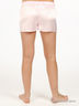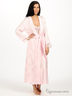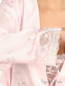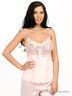Комплект состоит из халата, брюк, рубашки, топа, шорт и сорочки. Халат, рубашка и топ выполнены из шелковистой ткани с жаккардовым плетением. Брюки, шорты и сорочка из атласной ткани. Халат завязывается на пояс, рукав 7/8 дополнен кружевной вставкой. Рубашка застегивается на пуговицы, длинный рукав с кружевной вставкой. Брюки посажены на резинку, дополнены кружевными вставками внизу. Топ на тонких, регулирующихся по длине бретелях декорирован кружевной вставкой. Шорты посажены на резинку. Длинная сорочка на тонких, регулирующихся по длине бретелях декорирована кружевной вставкой.