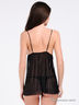 Детали: на тонких регулируемых лямках, отрезной лиф с атласной лентой и вставками из соблазнительного кружева, спереди кокетливый разрез, в комплекте трусики-танга