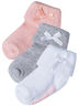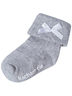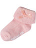 Носки с отворотами и противоскользящим принтом на подошве, украшены бантиками из атласной ленты.