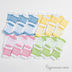 Комплект носочков для девочки. Состоит из двенадцати пар, четырех цветов. Выполнены из тонкого эластичного трикотажа, резинка в рубчик. След формованный, усилен прорезиненной нескользящей аппликацией на подошве.